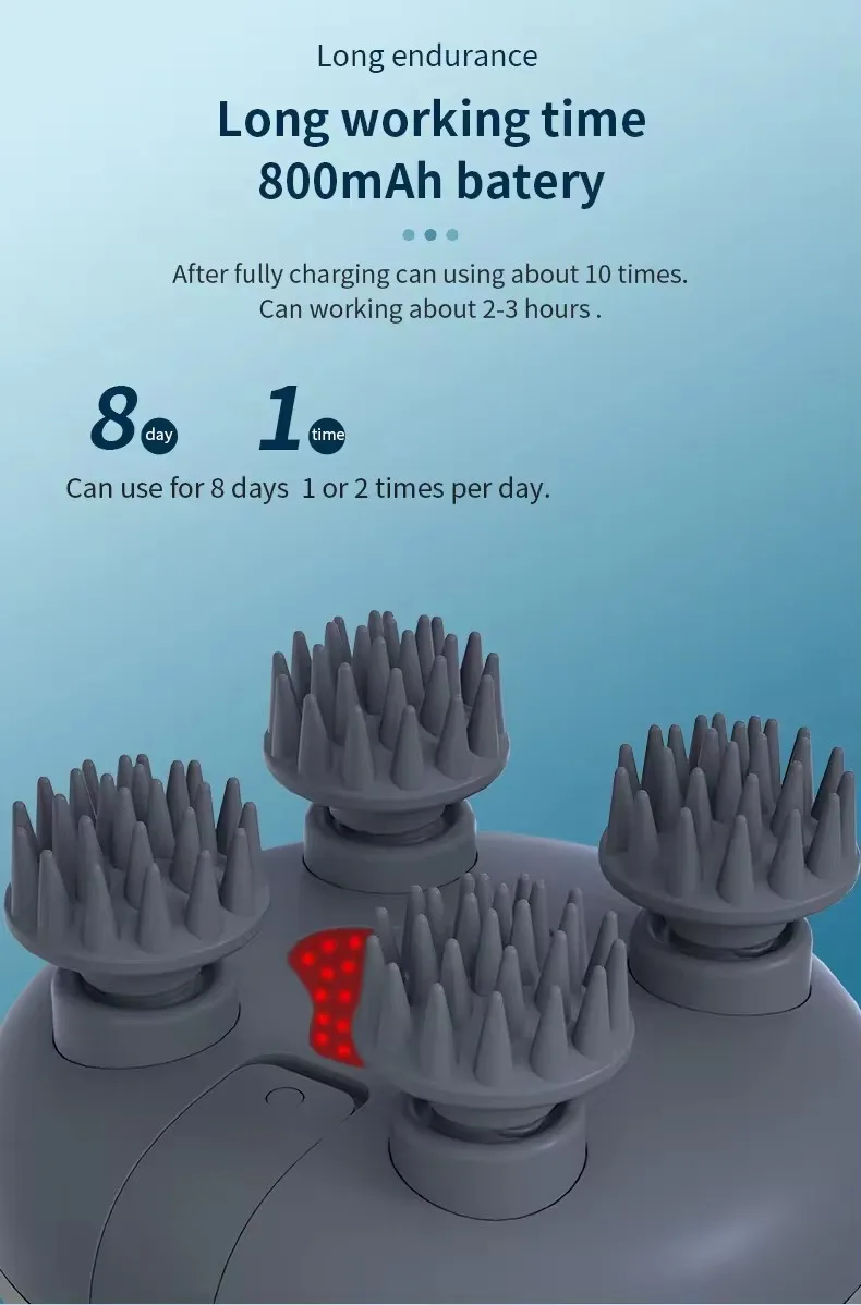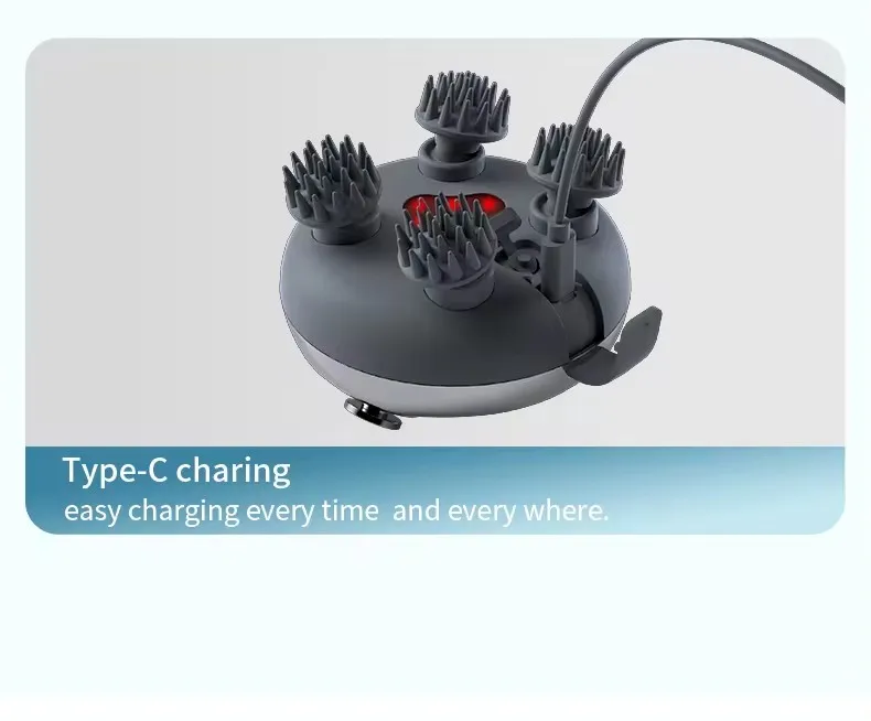 experience the ultimate in scalp relaxation and hair growth with our portable electric scalp massage device. this rechargeable, water-resistant massager is designed to provide a vibrant massage experience, simulating human fingers to knead and relax your scalp, promoting comfort and effectiveness.
