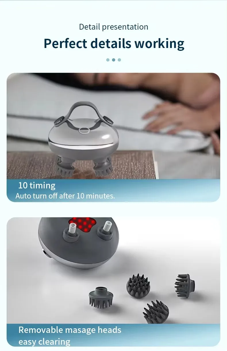 with its advanced features and ergonomic design, our portable electric scalp massager is the perfect solution for anyone looking to promote hair growth, relieve stress, and enjoy a relaxing scalp massage experience. suitable for the middle east audience, this product is designed to meet the needs of those seeking a high-quality, effective, and easy-to-use scalp massager.